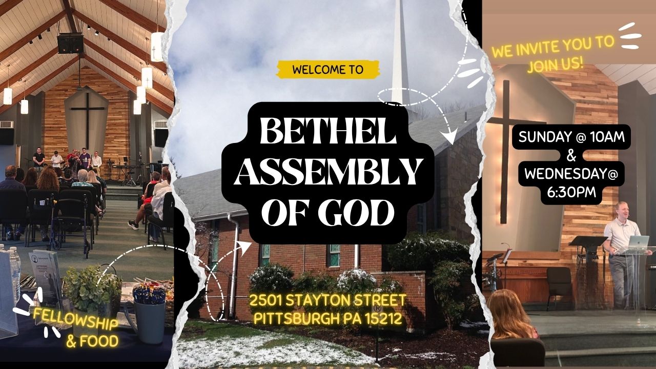 Welcome to Bethel Assembly Together seeking something better Get in Touch Address 2501 Stayton StreetPittsburgh, PA 15212 Phone (412) 231-5200 Email bethel@bethelpgh.org Follow us